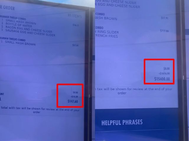 영상에서 A씨는 소세지 계란 치즈 슬라이더와 베이컨에그 치즈 슬라이더, 해쉬브라운, 물 등 간단한 콤보 메뉴를 주문했다. 원래대로라면 A씨가 지불해야할 금액은 34달러(한화 약 4만원) 정도였지만, AI종업원은 “147.6달러(한화 약 20만원)를 내라”고 말했다. 갑자기 5배 가량 ‘바가지’를 씌운 것이다.