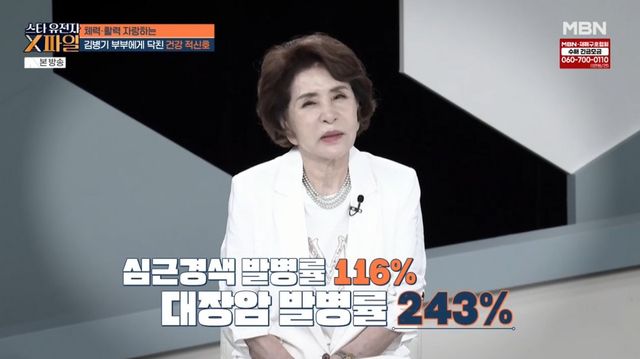 검사에 앞서 부부의 질병 가계도가 공개됐다. 김병기 아버지·어머니는 당뇨병·폐렴·고혈압·관절염 병력이 있었고, 아내 장경화는 어머니가 심부전증, 동생들이 위암·담도암으로 세상을 떠난 상태였다. 박주홍 의학·한의학 박사는 “모두 혈관 건강이 나빠지면 발병률이 올라가는 질환”이라고 짚었다.