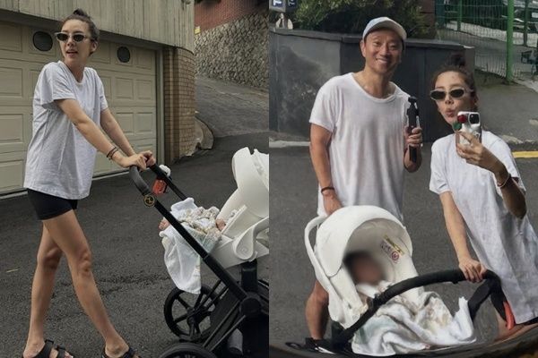 흰색 티셔츠와 반바지, 선글라스를 착용한 손담비는 가볍고 자연스러운 분위기 속에서 딸과 함께 여유로운 시간을 보내고 있다. 남편 이규현도 흰 티셔츠와 모자로 캐주얼한 스타일을 완성하며 가족의 행복한 모습을 보여줬다.