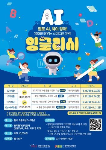 [와이뉴스] 평택시국제교류재단 평택영어교육센터에서는 오는 9~12월 관내 초등학생 3~6학년을 대상으로 인공지능(AI) 기술을 접목한 영어교육 프로그램 ‘AI 잉글리시’를 본격적으로 운영한다고 밝혔다.
