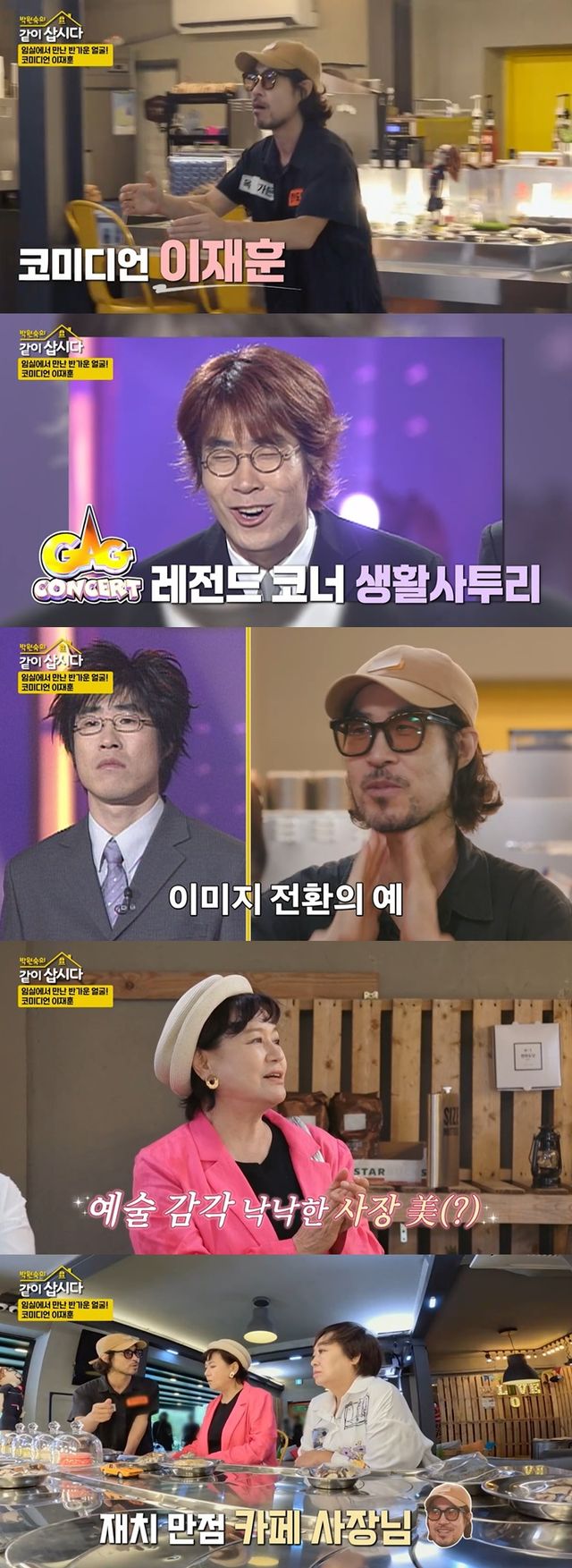 이재훈은 박준형과 함께한 '생활사투리' 코너로 큰 사랑을 받았다. 그는 과거와 달리 수염과 장발로 새로운 이미지를 선보였다. 박원숙은 "너무나 예술적인 사장 같다. 잘 되길 바란다"고 응원했다.