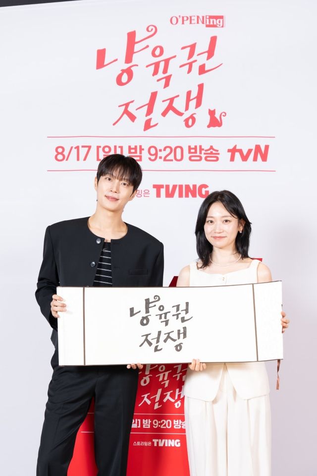 배우 윤두준과 김슬기가 tvN 단막극 연작 시리즈 ‘오프닝(O'PENing) 2025’의 ‘냥육권 전쟁’에서 부부로 재회했다. 2015년 MBC 드라마 ‘퐁당퐁당 LOVE’에서 연인으로 호흡을 맞춘 뒤 10년 만의 만남으로, 성숙해진 연기와 변함없는 케미를 예고했다.