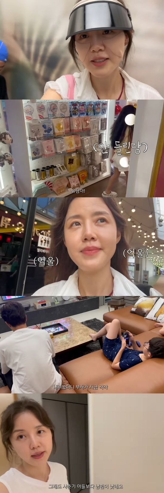 이날 두 아이들과 함께 인천 중구에 위치한 리조트의 수영장을 찾은 이하정은 기진맥진한 상태로 화장품 쇼핑까지 마친 바쁜 하루를 담았다.