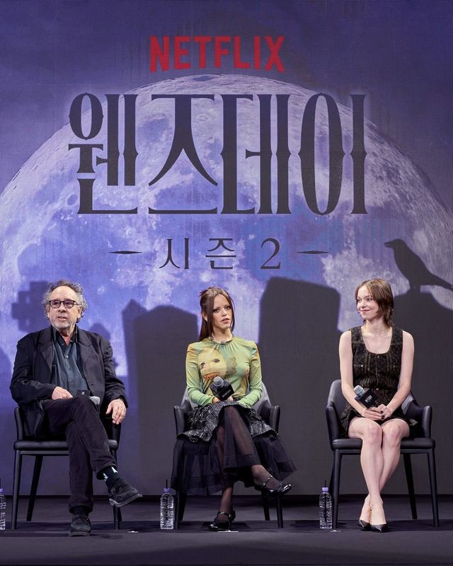 고스걸 열풍의 주인공, 제나 오르테가가 드디어 한국을 찾았습니다. 시즌 2로 돌아온 팀 버튼 감독의 넷플릭스 시리즈 〈웬즈데이〉 홍보를 위해서였죠.
