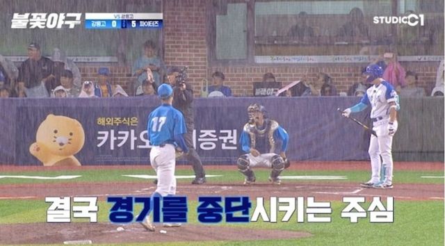 지난 11일 스튜디오C1 채널에서 공개된 야구 예능 ‘불꽃야구’ 15화에서는 불꽃 파이터즈와 강릉고의 맞대결 현장이 전해졌다. 경기 초반부터 파이터즈가 5-0으로 앞서며 기세를 올렸지만 예기치 못한 폭우가 쏟아지며 경기가 중단됐다. 뜨거운 승부를 기대했던 팬들은 아쉬움을 삼켜야 했다.