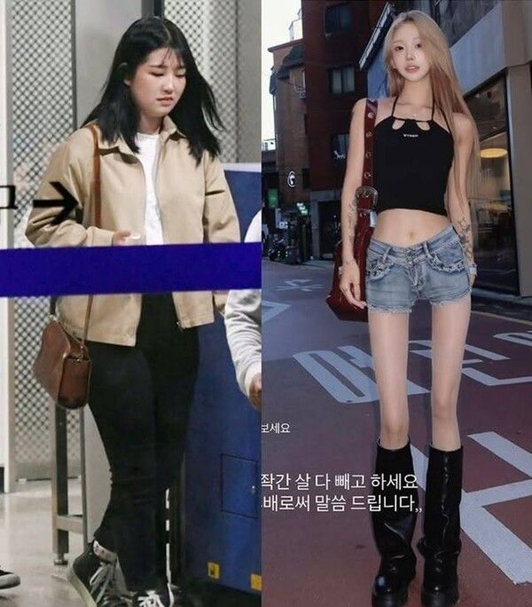 군살 하나 찾아볼 수 없는 몸매와 과거의 통통했던 모습이 극명하게 대비됐다.
