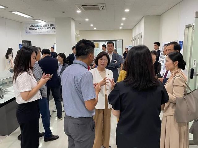 [와이뉴스] 경기도의회 교육행정위원회 이애형 위원장(국민의힘, 수원 세류1·2·3동 및 권선1동)은 11일 경기도교육청이 주최하고, 차세대융합기술연구원이 주관하여 개최된 ‘2025학년도 미래 신산업분야 하이테크 특성화고 계약학과 반도체 분야 하계 교육 입교식’에 참석해 학생들을 격려하고, 융기원 내부 반도체 시설 및 교육장소를 둘러보는 시간을 가졌다.