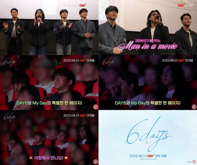 12일 CGV 공식 유튜브 채널에는 오는 13일 개봉을 앞둔 ‘6DAYS’의 VIP 시사회 현장 스케치 영상이 공개됐다. 해당 행사는 지난 5일 저녁 CGV 왕십리에서 데이식스 팬덤 마이데이(MyDay) 5기 한정 추첨으로 진행됐다.