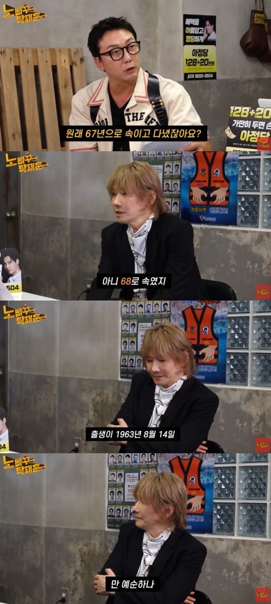 이에 탁재훈은 "원래 67년생으로 속이고 다녔잖아요"라고 묻자, 김장훈은 "아니다. 68년생으로 속였다"고 답했다.