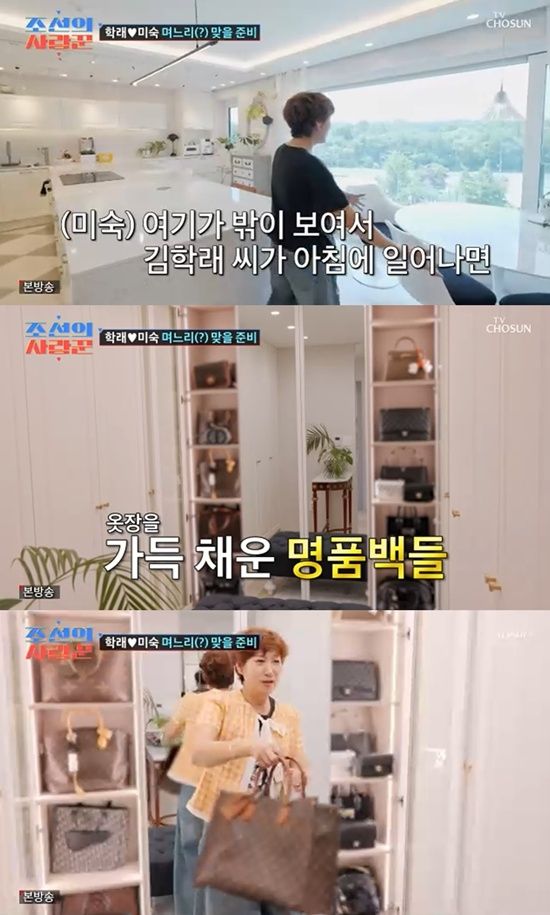 옷장을 가득 채운 명품 가방들을 살피던 임미숙은 “이런 거 주면 진짜 좋겠다”며 검정색 가방을 들어 보였다. 이어 다른 가방을 들며 “요즘 애들이 큰 백을 좋아한다던데, 증권 회사 갈 때 메고 가면 얼마나 좋냐”고 말해 제작진을 폭소케 했다.