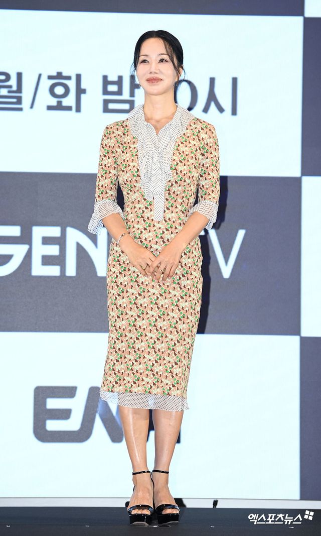 배우 엄정화가 제작발표회에 참석해 포토타임을 갖고 있다.