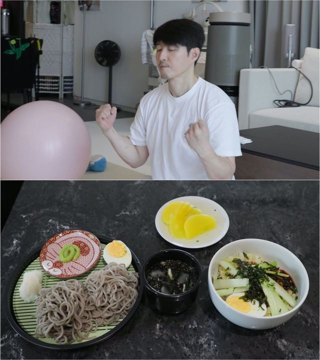 심형탁은 전완근에 불끈 힘을 주고 메밀국수에 곁들일 무를 강판에 갈기 시작하고, 삶은 달걀과 오이까지 야무지게 준비하며 플레이팅에 혼을 쏟는다.