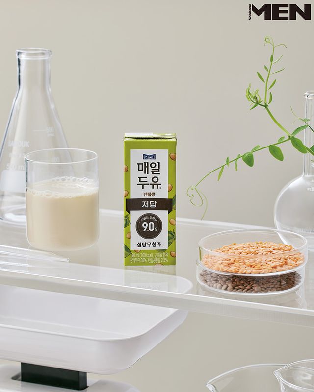 매일유업과 <저속노화 식사법> 저자 정희원 박사가 공동 개발한 ‘매일두유 렌틸콩’. 1팩 기준 단백질 9g, 식이섬유 3g을 함유했으며, 설탕을 첨가하지 않아 담백하게 즐길 수 있다.