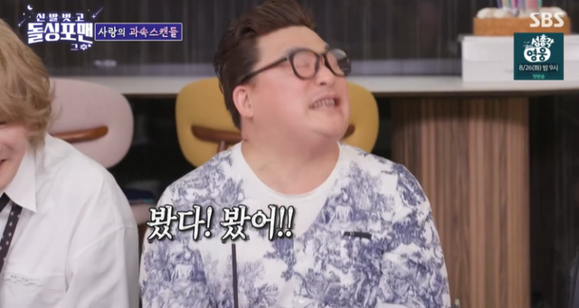 이를 들은 김준호는 윤정수에게 갑자기 “형수님이 형 몸을 보셨냐. 뱃살을 보셨냐”고 장난을 쳐 웃음을 자아냈다. 이에 당황한 윤정수는 말을 잇지 못하더니 “봤다 봤어!”고 폭발해 폭소를 안겼다.