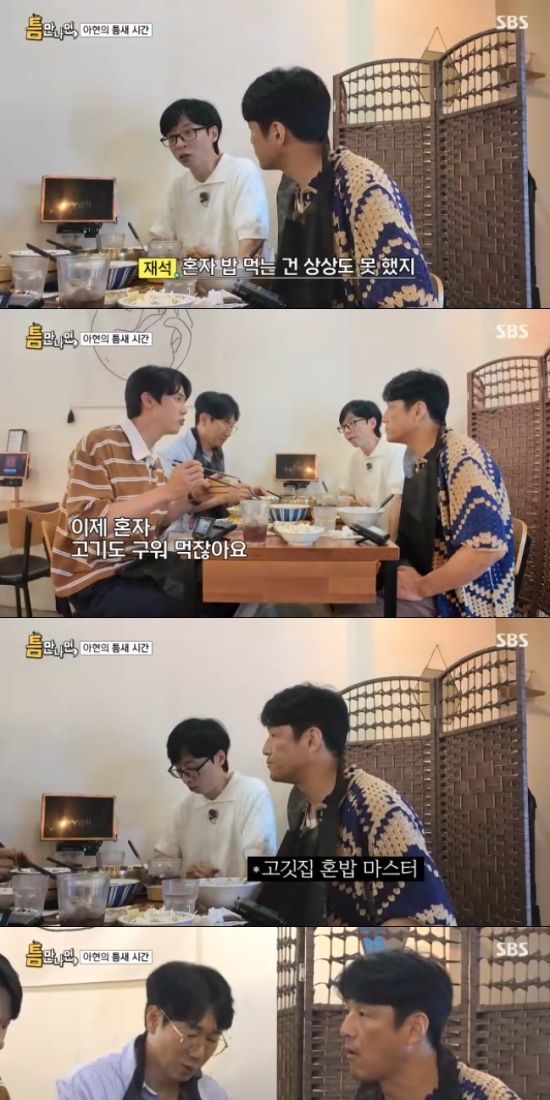 그리고 이날 유재석, 지석진, 지진희는 옛날 이야기에 푹 빠졌다. 혼밥족들을 위한 1인 자리가 많이 마련되어있는 식당을 본 유재석은 "옛날에는 혼자 밥을 먹는건 상상을 못했다"고 했고, 지진희도 "혼자 고기를 구워먹으면 이상하게 쳐다봤었다"고 공감했다.