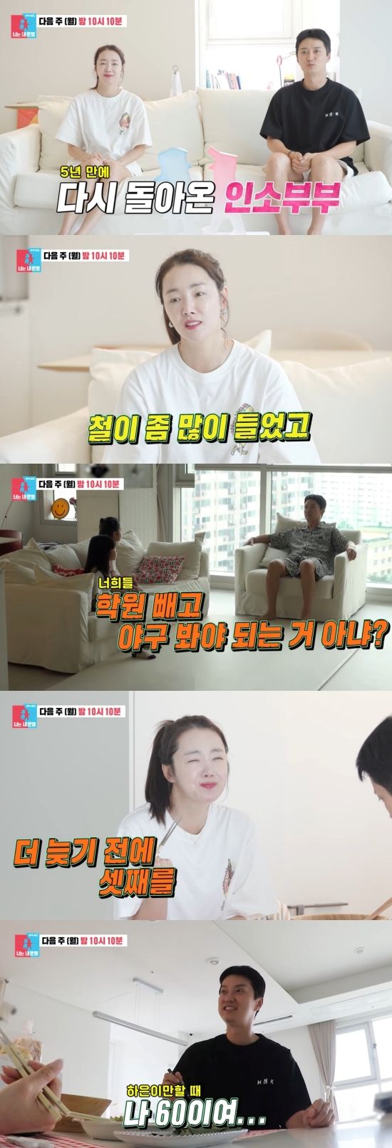 다음 장면에서는 이들의 일상이 담겼고, 인교진은 두 딸에게 "오늘 중요한 날인데 학원 빼고 야구 봐야 하는 거 아니냐"라고 땡땡이(?)를 권유해 소이현의 헛웃음을 유발했다.