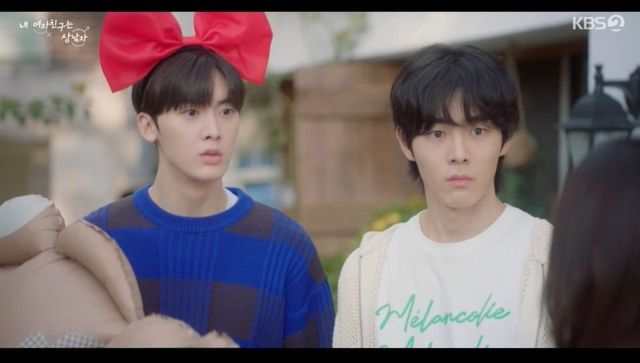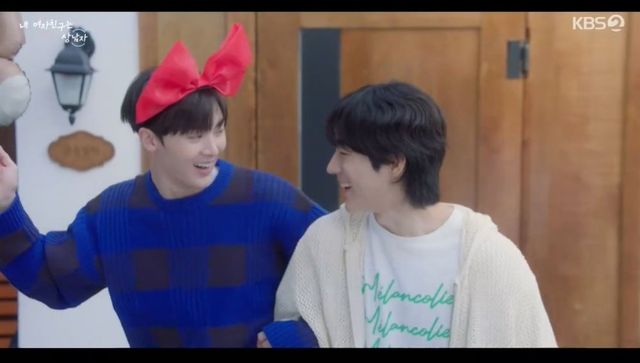 이날 머리띠를 쓴 박윤재는 풍선을 들고 김지훈을 찾아왔다. 둘이서 행복하게 춤을 추고 있던 그때 강민주(츄)가 나타났다. 강민주는 “나 이사 왔는데?”라며 김지훈과 같은 건물로 이사 왔다고 밝혔다. 강민주가 “내가 여기 오면 안 되는 거야?”라고 묻자 박윤재와 김지훈은 같이 “응”이라고 끄덕였다.