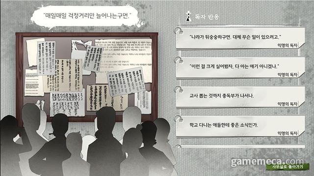 기사 제목과 톤은 신문사의 명성을 높이는 데 도움이 되지만, 반대로 총독부의 검열 강도에도 영향을 미친다. 발행한 기사에 대한 독자들의 반응도 실시간으로 확인할 수 있다. 진실을 밝히는 용기를 택할지, 아니면 신문사를 지키기 위해 거대한 시대의 힘에 짓눌려 침묵할지, 매일 선택의 순간에 놓인다. 이러한 선택들이 모여 다양한 결말을 낳는다.