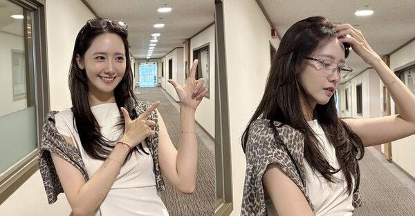 사진 속 윤아는 네모난 안경을 쓴 채 머리카락을 뒤로 쓸어넘기며 시크한 표정을 짓고 있다.