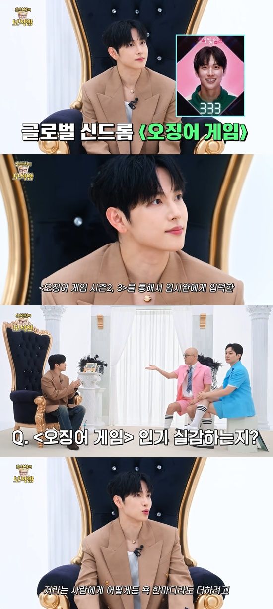 그는 "'오징어 게임' 이후로 전 세계에서 임시완에 대한 주목도가 난리난 거 아시냐"고 물었고, 임시완은 "주목도라기보다는 저라는 사람에 대해 욕 한 마디라도 더 하려고 그러는 것 같다"고 답했다.
