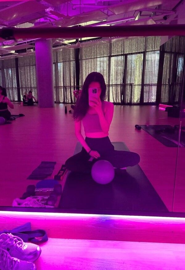 사진 속 정려원은 요가매트 위에서 거울 셀카를 찍는 모습이다.