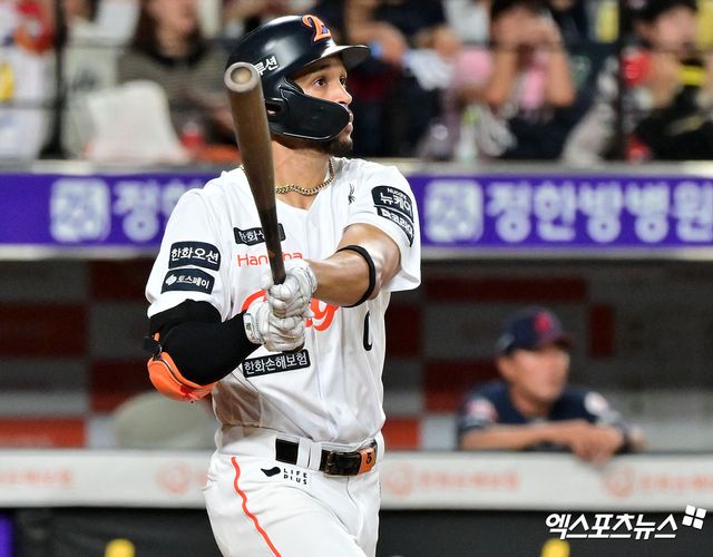 한화가 먼저 앞선 경기였다. 2회말 노시환이 롯데 선발 나균안의 2구 커터를 공략해 좌전 2루타를 치고 출루했고, 이어 타석에 들어선 채은성이 풀카운트 승부 끝에 중전안타를 만들어내고 2루에 있던 노시환을 불러들였다. 5회말에는 이진영의 솔로 홈런이 터지며 점수는 2-0이 됐다.