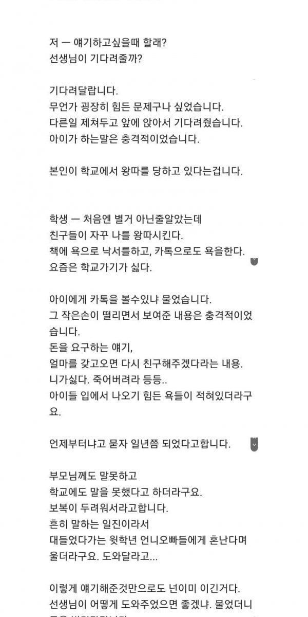[스압] 선생님 저 학교에서 왕따 당하고 있어요,,