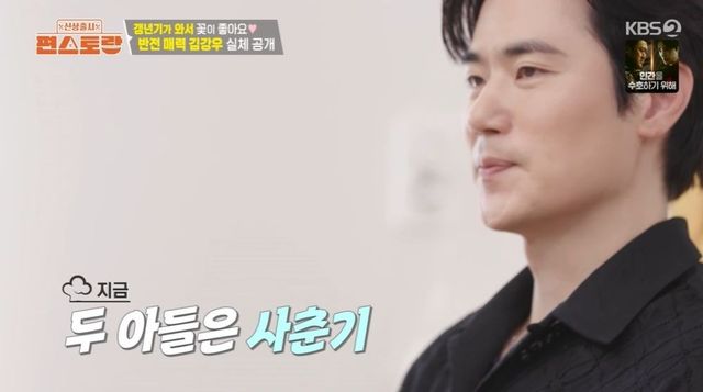 1978년생으로 올해 47세라는 김강우는 “노안도 오고, 주름도 생기고, 흰머리도 난다”라고 털어놓았다. 결혼 15년 차인 김강우는 15세 첫째 아들, 13세 둘째 아들을 키우고 있는 아빠로, “내가 이길 거다. 어디 사춘기가 갱년기에 덤비냐”고 말해 웃음을 자아냈다. 김강우의 아내는 배우 한혜진의 친언니인 한무영.