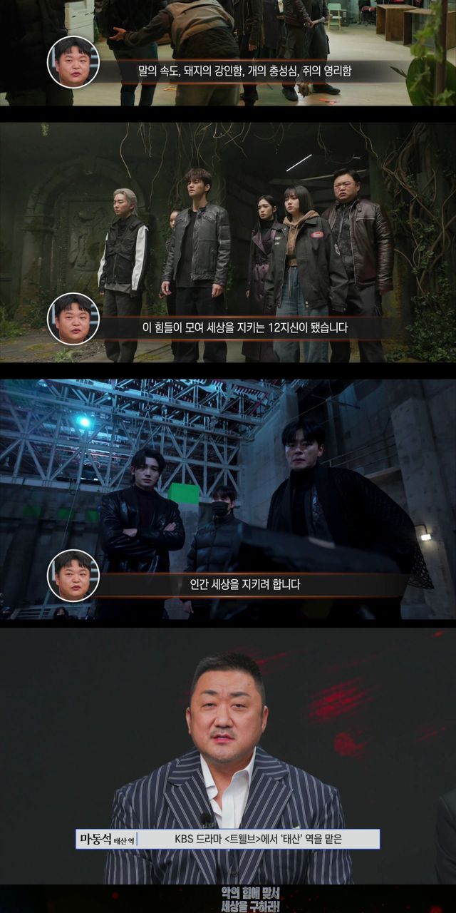 12지신 천사인 ‘태산’ 마동석, ‘원승’ 서인국, ‘미르’ 이주빈, ‘도니’ 고규필, ‘강지’ 강미나, ‘쥐돌’ 성유빈, ‘말숙’ 안지혜까지 주요 배우들이 예비 시청자와 만난다. 동양의 전통 설화에 판타지적 상상력과 독창적인 스토리텔링을 결합한 ‘트웰브’ 는 전에 없던 한국형 액션 히어로의 탄생을 알리며 뜨거운 스포트라이트를 받고 있다. 특별 편성된 스페셜 방송 ‘K-히어로, 트웰브 비긴즈’에서는 현장의 생생함이 담긴 제작기 영상과 12천사의 리더이자 호랑이를 상징하는 천사 ‘태산’의 개회 선언, 배우들이 직접 소개하는 캐릭터 토크, 서로 간의 케미와 팀워크를 엿볼 수 있는 지·덕·체 테스트 등 다채로운 코너가 준비되어 있다. 여기에 1-2화 하이라이트 영상까지 최초 공개될 예정으로 새롭게 시작하는 드라마의 첫 포문을 화려하게 열 예정이다. ‘K-히어로, 트웰브 비긴즈’는 KBS 2TV에서 15일(금) 오후 12시 50분(30분 방영)과 오후 7시 50분(60분 방영) 두 차례에 걸쳐 확인할 수 있다.
