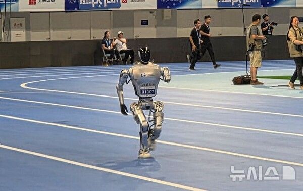 뉴시스 보도에 따르면, 15일 베이징 북쪽 국가스피드스케이팅관에서 열린 '2025 세계휴머노이드로봇운동회' 경기장에 들어서니 이미 펼쳐지고 있는 1500m 달리기에 참가한 인간형 로봇을 응원하는 한 여성 관중의 목소리가 들렸다.
