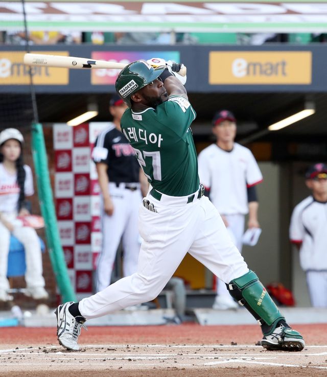 에레디아는 15일 인천 LG 트윈스전에 3번 타자·좌익수로 선발 출전, 7회 네 번째 타석에서 시즌 8호 홈런을 때려냈다. 2-2로 팽팽하게 맞선 2사 주자 없는 상황에서 LG 중간계투 김진성의 2구째 슬라이더를 받아쳐 가운데 펜스를 훌쩍 넘겼다. 타격 직후 홈런임을 직감할 수 있는 큼지막한 타구. 비거리는 130m로 측정됐다.