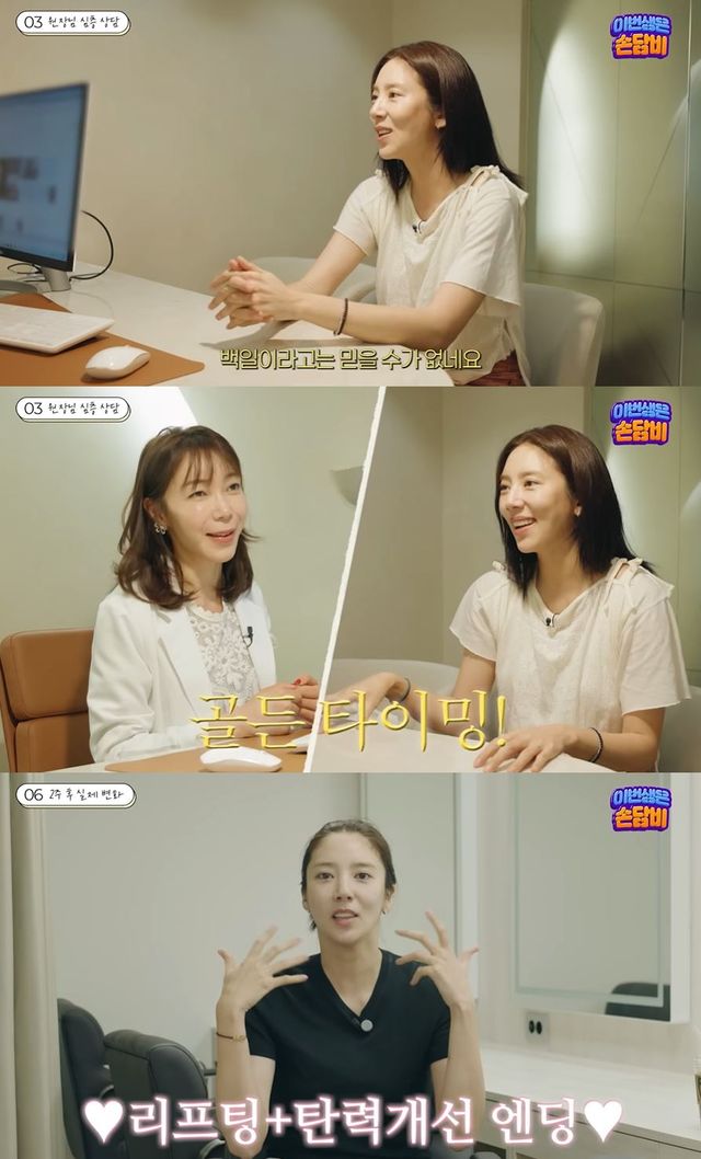 이어 손담비는 리프팅 관리를 위해 상담을 받는 모습을 공개했다.
