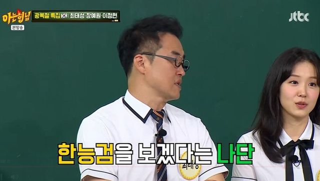 장예원은 “처음에 조나단이 시험을 보겠다고 하더라. 너무 잘됐다고 생각했다. 조나단이 2급을 땄는데, 어느 날 김동현도 자격증을 따겠다고 하더라. 한번에 5급에 붙었다”라며 MC 3명 중 2명이 합격한 상황이어서 압박을 받았다고 고백했다. 장예원은 “거기서 내가 똑순이로 나오는데. 태성이가 너무 미웠던 게 ‘예원이는 무조건 1급이지. 1급 아니면 말도 꺼내지 마라’라고 압박했다. 수능 보듯 공부하고 2달 동안 친구도 안 만났다”라고 토로했다.
