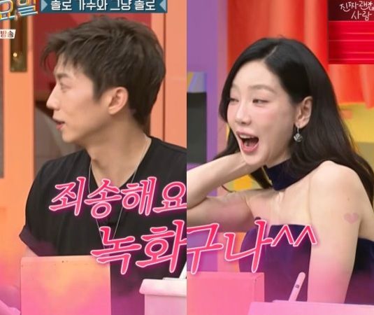 속삭이는 우영과 태연에 스튜디오는 "둘이 무슨 이야기를 하냐", "사담을 하냐"며 어리둥절해 했고 우영은 "죄송하다. 녹화중이었구나"라고 이야기해 묘한 분위기를 풍겼다.