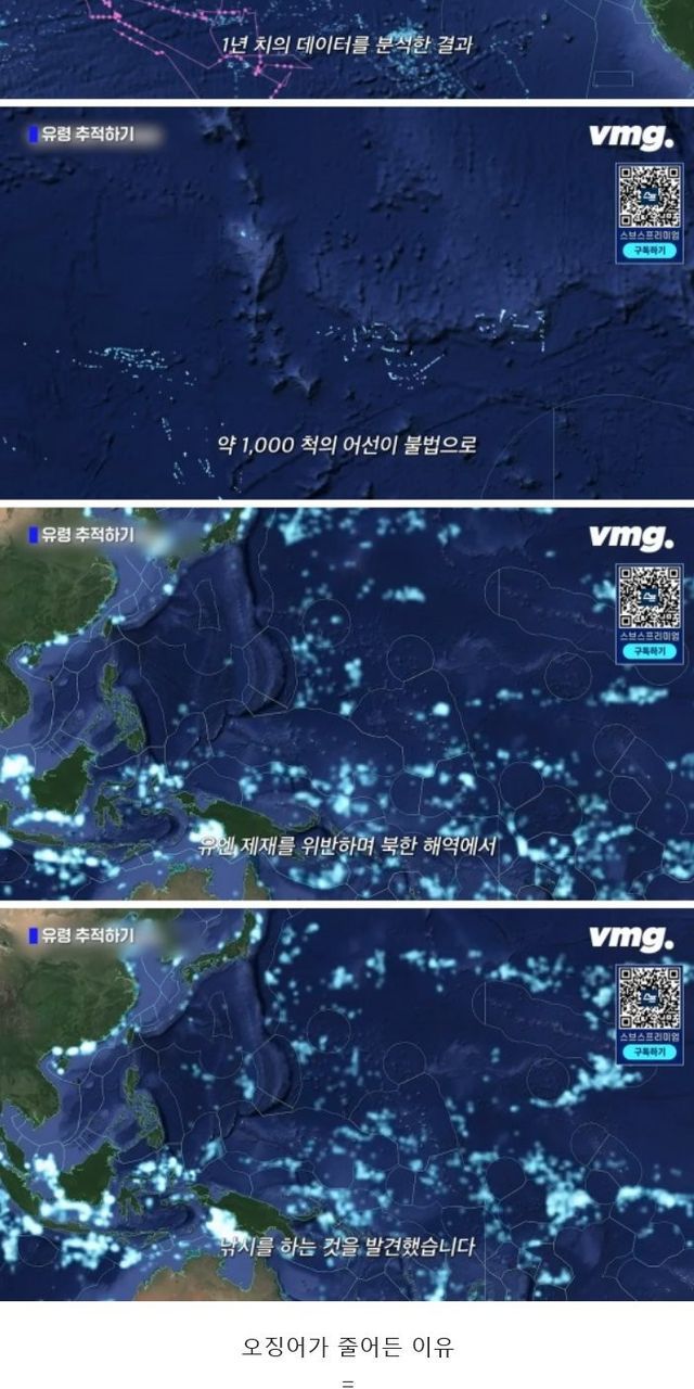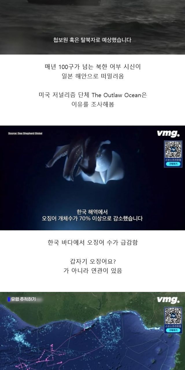 그리고 한국에서는 동해의 오징어 수가 70% 이상 급감해 오징어 어획량이 10년 새 절반 이상 줄어드는 현상이 발생했습니다.