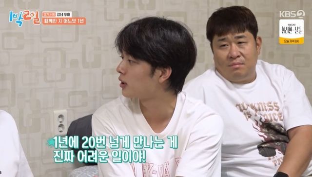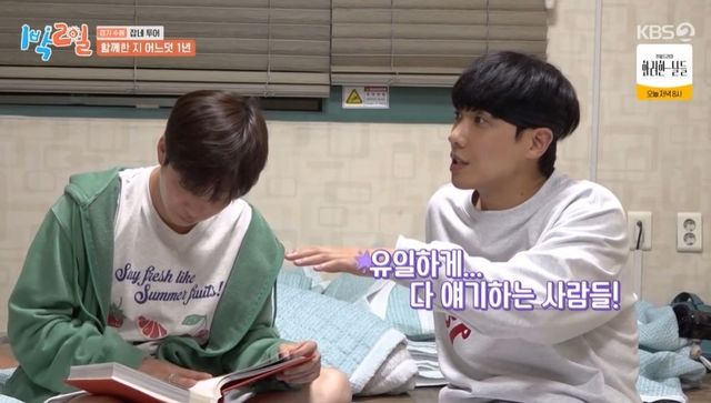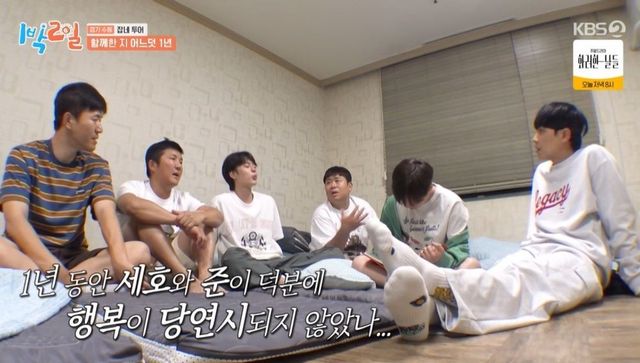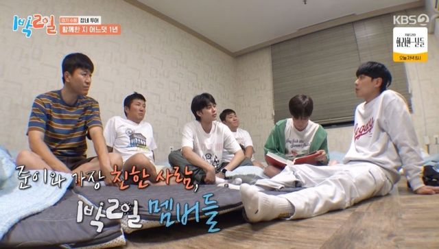 이준은 “저도 그렇다. 제일 친한 사람이 누구냐고 하면 멤버들이라고 한다. 내가 유일하게 다 얘기하는 사람들”이라고 고백했다. 김종민이 “우린 너의 비밀을 다 알지”라고 하자 이준은 “우리가 안 지 1년밖에 안 됐는데 어떻게 이렇게 됐지. 오래 지낸 애들보다 더 많이 알고 있다”고 신기해했다. 1년에 스무 번 넘게 동고동락한 사이인 멤버들. 유선호는 “이게 진짜 어려운 일이다. 가족도 이렇게 못 만난다”라고 했다.