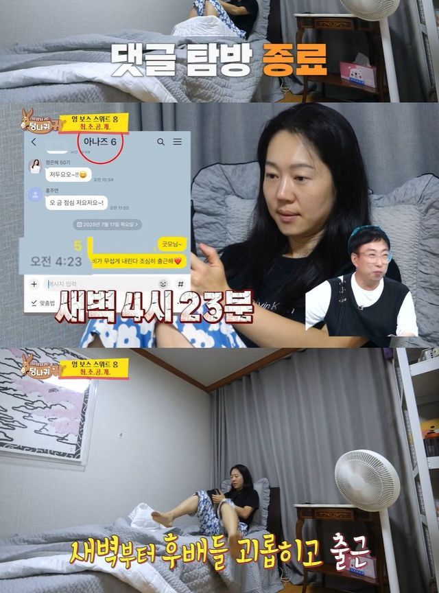그런가 하면 댓글 확인이 끝난 후 엄지인은 "애들은 잘 잤나?"라면서 새벽 4시 23분에 어딘가로 아침 인사를 보내는 장면이 포착됐다.