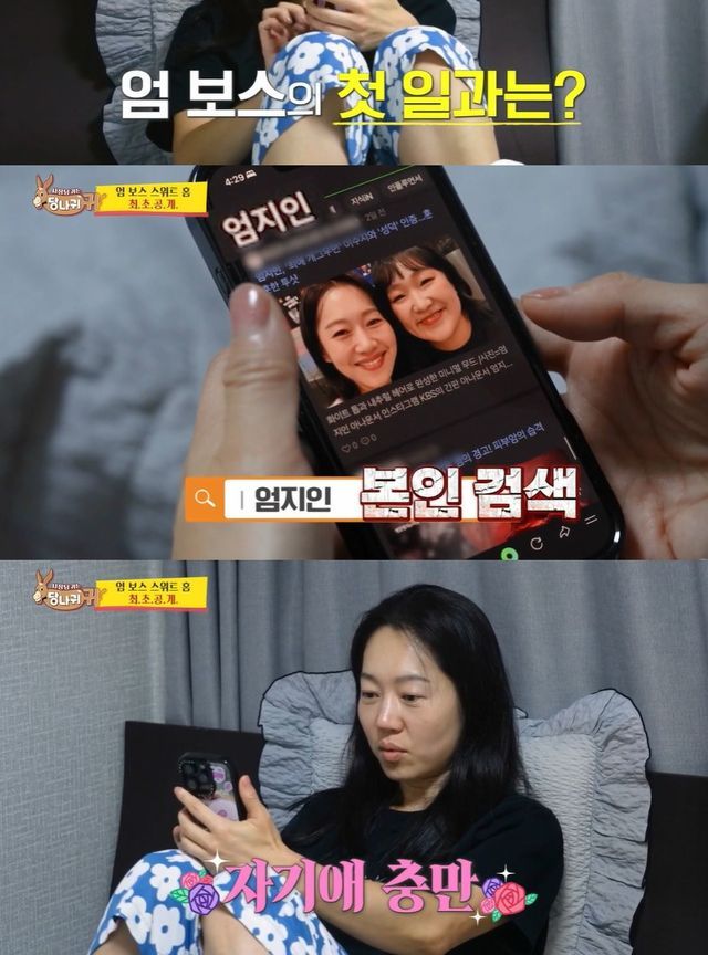 다소 부자연스러운 환경에 김숙은 "적당한 숙박 시설 찾은 거 아니냐"고 의심했고, 전현무도 "어느 유부녀가 저러고 사냐"고 말한 가운데 엄지인은 이날 첫 일과로 포털 사이트에 자신의 이름을 검색했다.