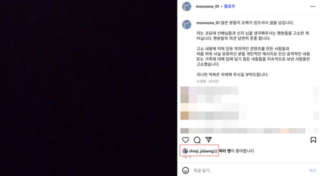끝으로 문원은 "지나친 억측은 자제해 주시길 부탁드린다"고 당부했다.