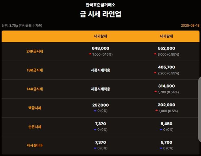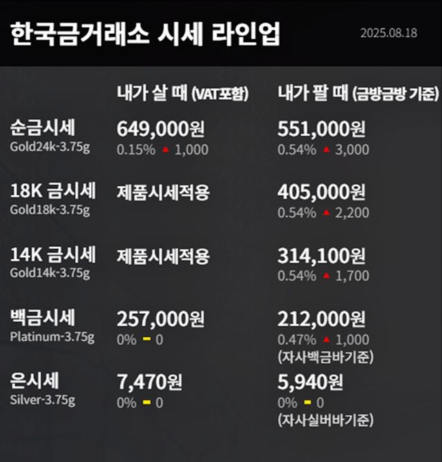 순금(24K) : 매입가 64만 9000원 / 매도가 55만 1000원