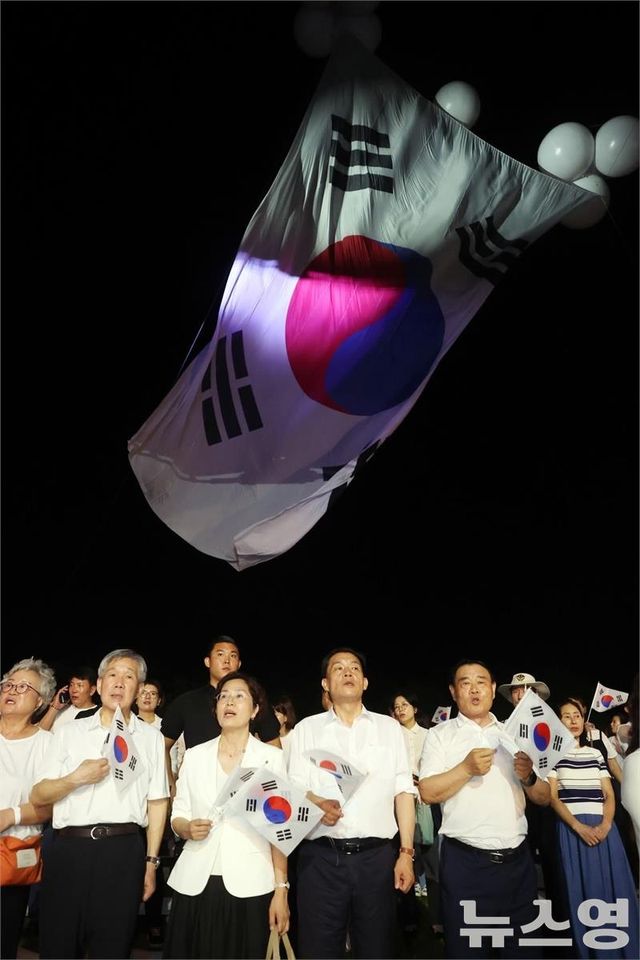 태극기를 흔들며 환호하는 시민들의 얼굴에는 자부심과 벅찬 감동이 가득했고, 합창과 불꽃은 하나 되어 ‘광복의 밤’을 완성했다.