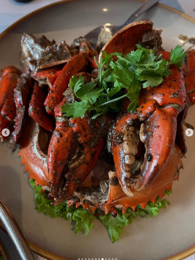 이어 공개된 사진에는 싱가포르 미식 여행의 상징과도 같은 점보 크랩이 담겼다. 싱가포르에서는 칠리 크랩, 블랙 페퍼 크랩 등 다양한 조리법의 대형 게 요리가 유명하다. 송해나는 붉게 구워진 크랩 앞에서 여행의 또 다른 즐거움을 만끽했다.