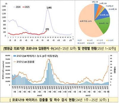 질병관리청 코로나19 입원환자 표본감시 결과에 따르면, 2025년 32주차(8월 3일~9일) 병원급 의료기관 221개소의 코로나19 입원환자 수는 272명으로 집계됐다. 이는 6월 중순 이후 6주 연속 증가한 수치다.