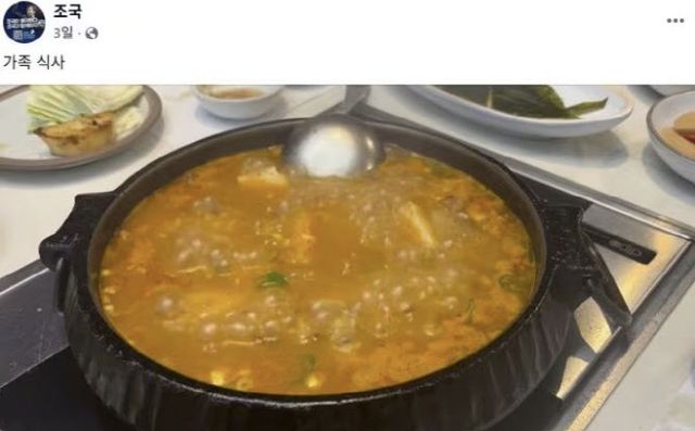 앞서 조 전 대표는 이날 저녁 자신의 페이스북에 ‘가족식사’라는 글과 함께 7초 분량의 영상을 올렸다. 영상은 된장찌개가 보글보글 끓고 있는 모습이었는데 이 영상이 때 아닌 논란을 불러 온 것이다.