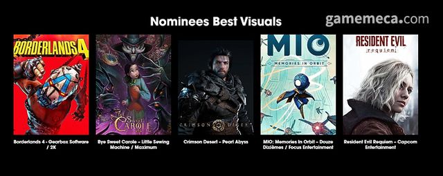 최고의 비주얼 부문에는 기어박스의 '보더랜드 4', 리틀 소잉 머신의 '바이 스위트 캐롤', 펄 어비스의 붉은사막, 두스 디지엠의 '미오: 메모리즈 인 올빗', 캡콤의 '바이오하자드 레퀴엠'이 후보다. 베스트 오디오 부문에는 더 게임 베이커스의 '케언', 슈퍼매시브의 '리틀 나이트메어 3', 에스게임의 '팬텀 블레이드 제로', 바이오하자드 레퀴엠, 리쉬트훈트의 '록비스츠'가 이름을 올렸다.