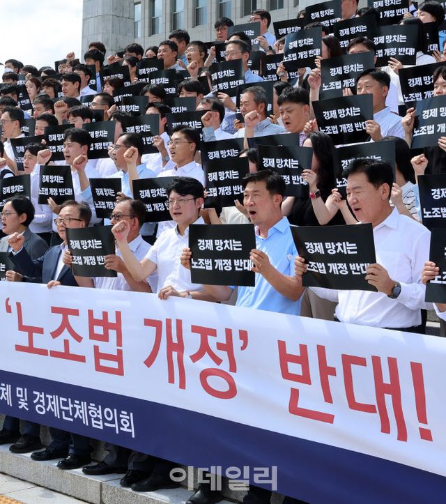 한편, 한국경영자총협회와 대한상공회의소, 한국경제인협회, 한국무역협회, 중소기업중앙회, 한국중견기업연합회 등 경제6단체는 이날 국회에서 노란봉투법 반대 결의대회를 갖고 법안 반대 입장을 천명하며 “개정될 경우 최소한 1년 이상 시행을 유예해달라”고 요구했다.