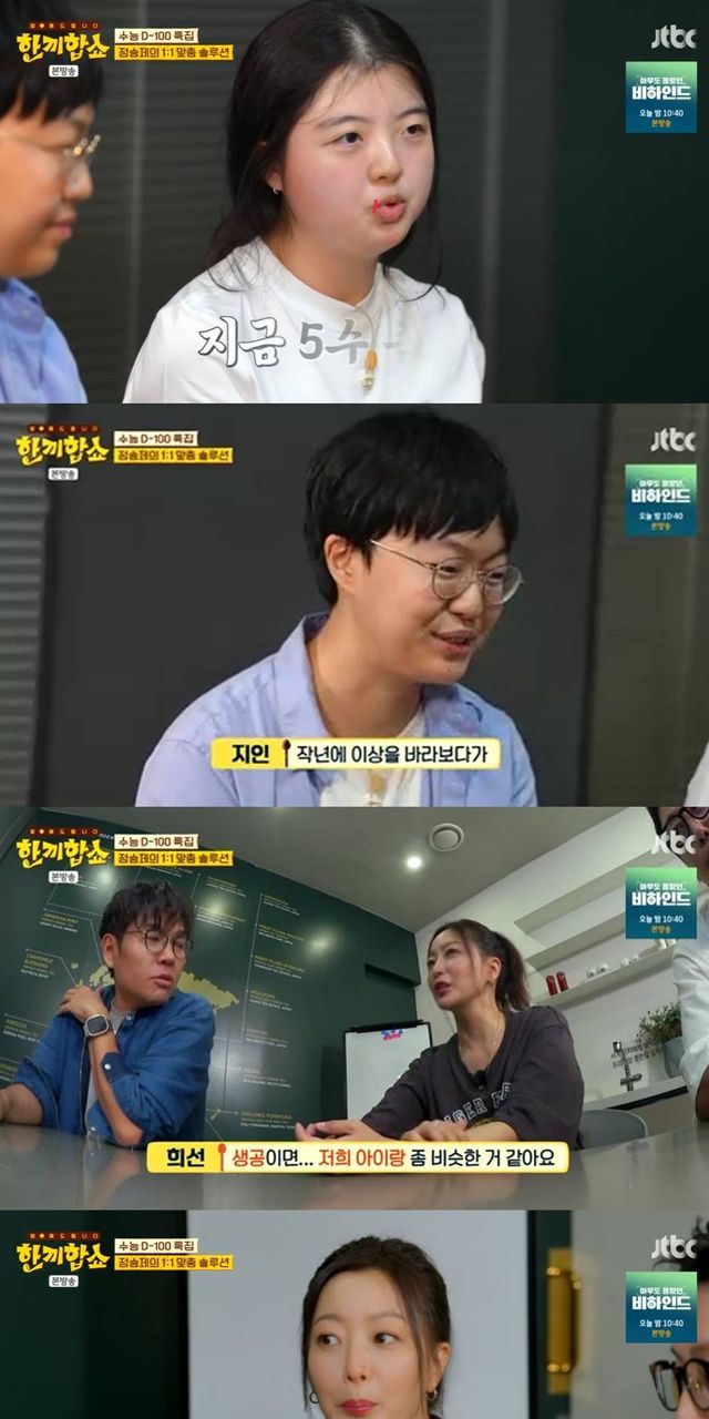 한 학생은 "03년생이고 지금 5수 준비 중이다"라고 말하며 의대가 목표라고 전했다. 또 다른 학생은 "06년생이고 이번에 재수한다. 이상을 바라보다가 올해 현실과 타협을 해서 대학을 가려고 하고 있다"고 말했다. 탁재훈은 "어디?"라며 목표 대학을 물었다.