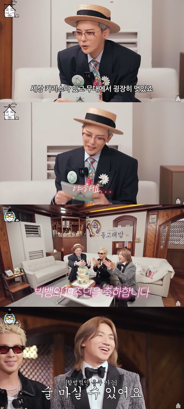이어 19주년 기념 3단 케이크 커팅식이 진행됐다. 이들은 노래를 부르며 케이크를 잘랐고, 지드래곤이 "이게 웬 말이냐. 이제 내년부터 당당하게"라고 말하자, 대성은 "술 마실 수 있다. 진짜 아직까지 참았다"라고 거들어 웃음을 안겼다.