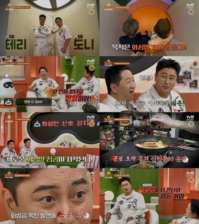 이어 아지트에는 사이렌 소리와 함께 ‘새로운 화성인 침공이 시작된다’는 자막이 등장한다. 화성급 신체, 화성급 부부, 화성급 식성 등 전혀 예측할 수 없는 화성인들의 면면이 속속 드러나자 두 MC는 “이런 프로였으면 안 했다”고 아연실색해 웃음을 안긴다.