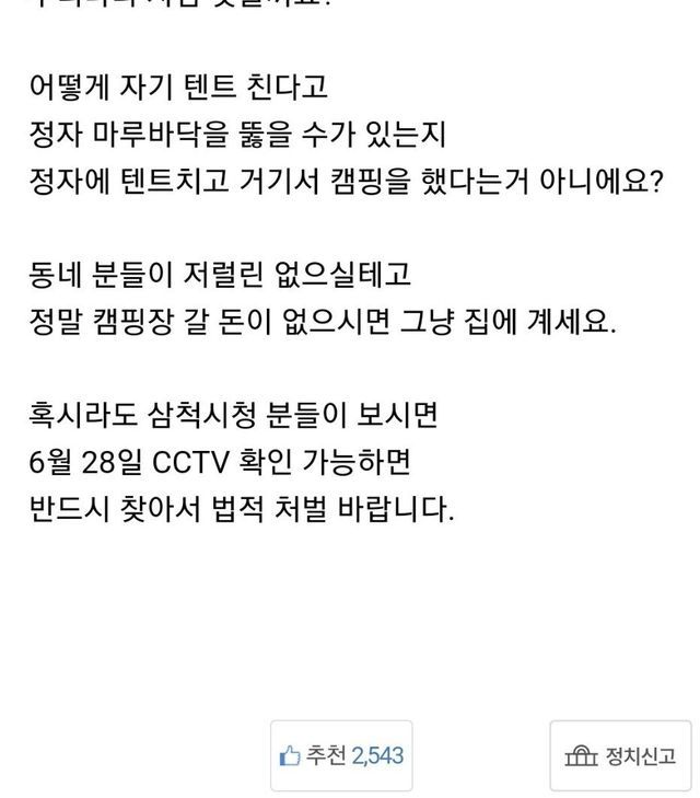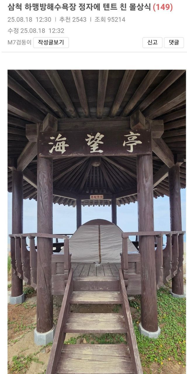 삼척시는 텐트 자진 철거를 권고했고 전반적인 정자 보수작업도 실시했다.